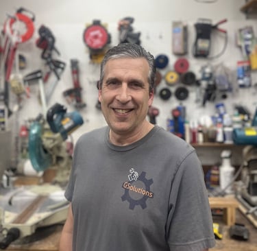I grew up in Minnetonka, MN and graduated from the University of Minnesota with a mechanical enginerring degree. I spent 11 years in product developement at Ford Motor Company working in Indiana and Michigan. My wife and I and our two children returned to Loretto, MN in 2004 where I spent 21 years in medical device product develoepment. In 2025 I left my corporate career and started GSolutions LLC to provide innovative hands on services to customers. When you hire GSolutions you can rest assured that the job will be done by me, the owner.